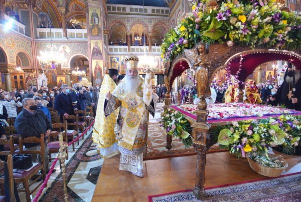 «Μπορεί και σήμερα να γίνονται πόλεμοι, μπορεί και σήμερα να χύνεται αίμα αθώο» αλλά «ο θάνατος, ο έσχατος εχθρός και το έγκλημα νικήθηκαν πια», είπε μεταξύ άλλων ο Σεβασμιώτατος τονίζοντας ότι είναι μία ώρα βαθιάς αυτεπίγνωσης. «Κηδεύουμε τη ζωή των απάντων που θα Αναστηθεί εκ νεκρών και θα χαρίσει σε όλους μας την αθάνατη επίγνωση και της δική μας μεγαλοσύνης. Ας πάρουμε λοιπόν αυτό το μήνυμα τώρα. Ας εμπνευστούμε από τη θυσία Του, την αγάπη Του και την προσφορά Του».