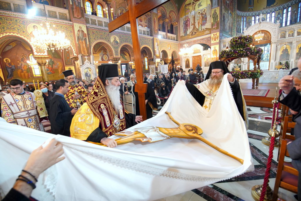 Προ της Απολύσεως ο Σεβασμιώτατος σημείωσε πως «σήμερα τιμούμε με αισθήματα χαρμολύπης την μοναδική ανατροπή της παγκοσμίου ιστορίας. Την ανατροπή της βίας, της εξουσίας, της οργής, της επιβολής, του καταναγκασμού και του θανάτου», συμπληρώνοντας παράλληλα πως αυτό δεν γίνεται με το μίσος και την εχθροπάθεια, «αλλά με την απερινόητη αγάπη, την μεγαλειώδη μακροθυμία, την άφατη συγκατάβαση, την πληρεστάτη στοργή».