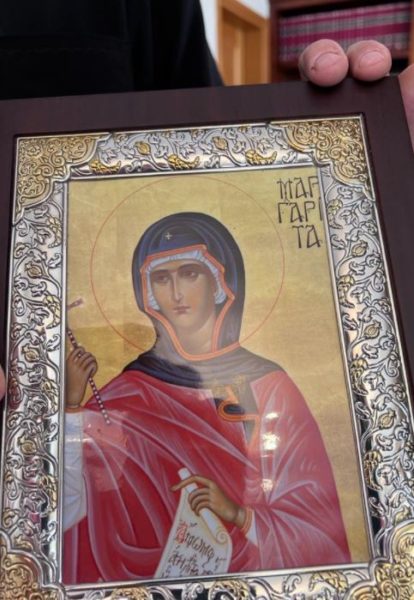 Προσφέροντας ως ενθύμιο της συναντήσεώς τους μία Εικόνα της Αγίας Μαργαρίτας, ο Σεβασμιώτατος ευχήθηκε να αποτελεί ασπίδα προστασίας στη ζωή της και της τόνισε πως μπορεί να θεωρεί την Ιερά Μητρόπολη σπίτι της. Επίσης ο Σεβασμιώτατος ανέφερε πως η τοπική Εκκλησία θα σταθεί δίπλα της σε κάθε περίσταση. Από την πλευρά της η κα Θεοδωράκη προσφέροντας ως αναμνηστικό δώρο στον Σεβασμιώτατο το βιβλίο της και έναν ψηφιακό δίσκο με συνθέσεις του γιου της Άγγελου, εξέφρασε την χαρά και την πρόθεσή της να προσφέρει στο τεράστιο κοινωνικό, φιλανθρωπικό και λοιπό έργο της Μητρόπολης Πειραιώς.