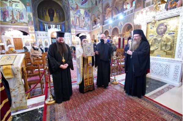 Προ της απολύσεως της Θείας Λειτουργίας του Μεγάλου Βασιλείου πραγματοποιήθηκε η λιτάνευση των Ιερών Εικόνων και η ανάγνωση του Συνοδικού της Ορθοδοξίας.