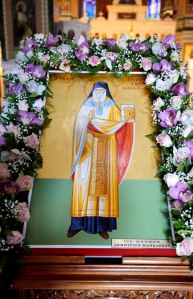 Αφού τόνισε πως στην εποχή της Τουρκοκρατίας δεν ήταν εύκολο να ζεις ως ραγιάς, σημειώνοντας πως «οι περισσότεροι έμειναν Χριστιανοί Ορθόδοξοι και Έλληνες» περιέγραψε το μαρτύριο του Αγίου υπογραμμίζοντας με έμφαση την ιλαρότητα του προσώπου του έως την τελευταία στιγμή. «Δέχθηκε με τόση χαρά το μαρτύριο που του διασφάλιζε την οριστική είσοδο στη Βασιλεία των Ουρανών, ώστε ενώ ήταν μαρτύριο σωματικά βαρύ, εκείνος χαιρόταν», είπε χαρακτηριστικά.