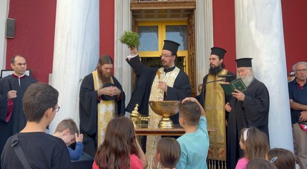 Στον Μητροπολιτικό Ιερό Ναό Αγίων Κωνσταντίνου και Ελένης Πειραιώς ο Αγιασμός τελέστηκε, παρουσία παιδιών και γονέων, στον προαύλειο χώρο, όπου ο προϊστάμενος του Μητροπολιτικού Ναού, Πρωτοπρεσβύτερος Ιωάννης Παναγιώτου ανέγνωσε το μήνυμα του Σεβασμιωτάτου Μητροπολίτη Πειραιώς κ. Σεραφείμ.
