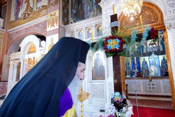Τέλος ευχήθηκε «με την Ευλογία του Τιμίου και Ζωοποιού Σταυρού… να πορευόμαστε το υπόλοιπο της Αγίας Τεσσαρακοστής και να φτάσουμε στο Σταυροαναστάσιμο Πάσχα, στο δικό μας πέρασμα από τη φθορά και το θάνατο στη ζωή και το φως».