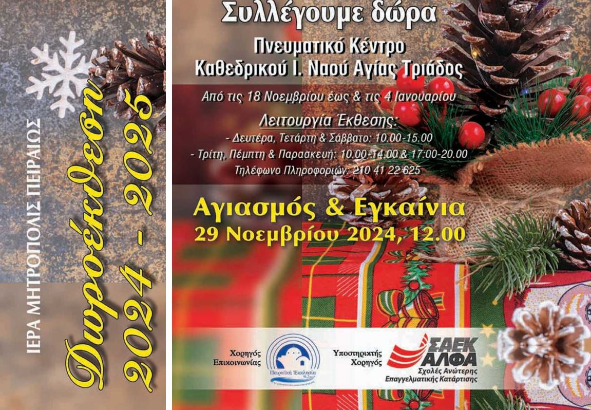 Η Δωροέκθεση της Ιεράς Μητροπόλεως Πειραιώς θα λειτουργήσει για μία ακόμη χρονιά στο Πνευματικό Κέντρο του Καθεδρικού Ιερού Ναού Αγίας Τριάδος Πειραιώς.