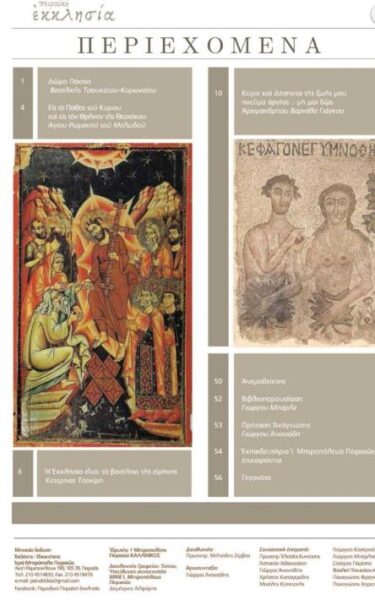 Επίσης στο τεύχος θα βρείτε και κείμενα ποικίλης θεματολογίας των: Αγίου Ρωμανού του Μελωδού, Αρχιμανδρίτου Βαρνάβα Γιάγκου, Κωνσταντίνου Γανωτή, Φώτη Κόντογλου, Κατερίνας Τσακίρη, Βασιλικής Τσουκάτου-Κορωναίου.