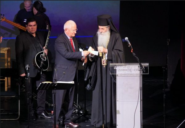 Κατά την διάρκεια της Εκδήλωσης ο Πρόεδρος και Διευθύνων Σύμβουλος του Σταδίου Καραϊσκάκης κ. Βασίλης Βασιλειάδης παρέδωσε όπως κάθε χρόνο, εκ μέρους του Προέδρου της ΠΑΕ Ολυμπιακός κ. Ευάγγελου Μαρινάκη, επιταγή ύψους 10.000 ευρώ για την ενίσχυση του Γενικού Φιλόπτωχου ταμείου της τοπικής μας Εκκλησίας, αλλά και τέσσερις επιταγές για την μισθοδοσία αντίστοιχων κληρικών οι οποίοι δεν καλύπτονται από το ελληνικό κράτος και την μισθοδοσία τους έχει αναλάβει ο ΟΣΦΠ.