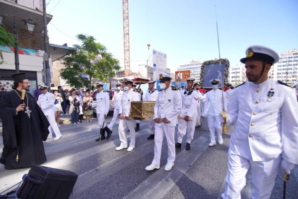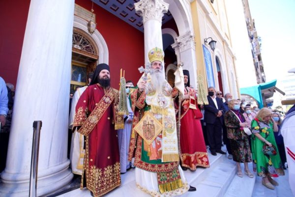 Ιερουργούντος του Σεβασμιωτάτου Μητροπολίτου Πειραιώς κ. Σεραφείμ τελέστηκε χθες Σάββατο 21 Μαΐου 2022 η Πανηγυρική Θεία Λειτουργία στον εορτάζοντα Μητροπολιτικό Ιερό Ναό Αγίων Κωνσταντίνου και Ελένης Πειραιώς, όπου τίθενται σε προσκύνηση τεμάχια Ιερών Λειψάνων των Αγίων Χαραλάμπους, Ιωάννου του Νηστευτού και Παρθενίου Επισκόπου Λαμψάκου, προερχόμενα από την Ιερά Μονή Αγάθωνος.