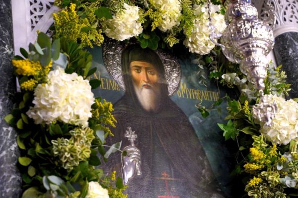 Αναφερόμενος στον σημερινό Όσιο ασκητή που προβάλει η Εκκλησία μας, σημείωσε ότι πρόκειται για «έναν άνθρωπο ο οποίος έζησε την ειρήνη της καρδίας, έζησε τα χαρίσματα του Πνεύματος, έγινε άνθρωπος ειρηνοφόρος, πνευματέμφορος, χαριτωμένος, έφτασε το Πνεύμα το Άγιον μέχρι το μεδούλι αυτού του ανθρώπου. Γι’ αυτό το σώμα του ανέβλυσε μύρο. Γιατί ενοικεί σε αυτό το Πνεύμα το Άγιον».