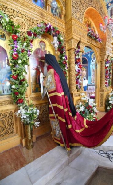 Ο Σεβασμιώτατος κατά την διάρκεια του κηρύγματός του, απευθυνόμενος στους πιστούς ανέφερε ότι «σήμερα τιμούμε την εύρεση μιας ιεράς εικόνας, ενός ιερού απεικάσματος της Υπεραγίας Θεοτόκου που επισυνέβη στις αρχές του 14ου αιώνα στην ωραία νησον των Κυθήρων όπου εκεί κατεγράφη το ιστορικό αυτό γεγονός, όταν ένας απλούς βοσκός εύρε την χαριτοβρυτον εικόνα μέσα στην περιοχή των Μυρτιδίων όπου οι μυρσίνες έχουν την μορφήν δένδρων και όχι θάμνων κατά το ειωθός. Σηματοδοτήθηκε αυτή η εύρεσις με πλήθος θαυμάτων τα οποία καταγράφονται έκτοτε εις τας ιστορικάς δέλτους της τοπικής αλλά και της πανελληνίου οικογενείας».