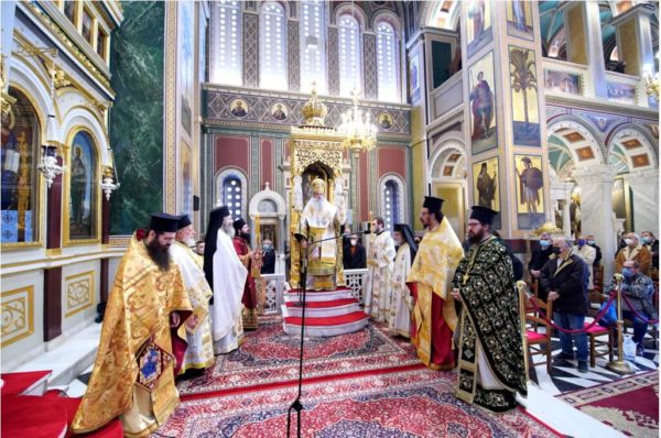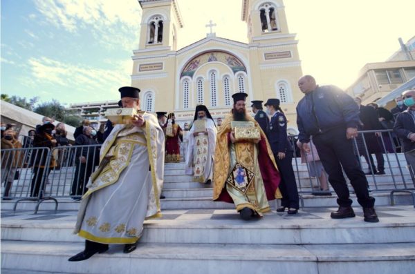 Με κάθε εκκλησιαστική λαμπρότητα τιμήθηκε από την Ιερά Μητρόπολη Πειραιώς σήμερα, Κυριακή, 12 Δεκεμβρίου 2021 η μνήμη του «προστάτου, εφόρου και πολιούχου της πόλεως και της Μητροπόλεως, του Ιερού Σπυρίδωνος, του Αγίου της πρώτης Εκκλησίας» που έλαβε μέρος στην Α΄ Οικουμενική Σύνοδο.