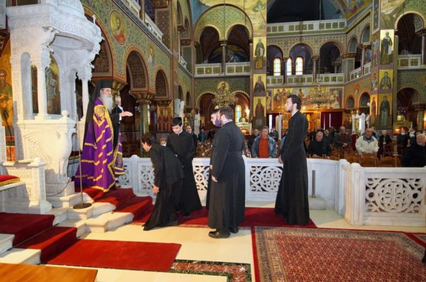 Με την κατάνυξη και την Εκκλησιαστική τάξη που αρμόζει στην αρχή της Αγίας και Μεγάλης Τεσσαρακοστής τελέστηκε χθες ο Α’ Κατανυκτικός Εσπερινός (« της Συγγνώμης») στον Καθεδρικό Ιερό Ναό Αγίας Τριάδος Πειραιώς, χοροστατούντος του Μητροπολίτη Πειραιώς κ. Σεραφείμ, ο οποίος και κήρυξε τον Θείο Λόγο.