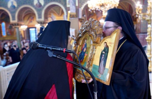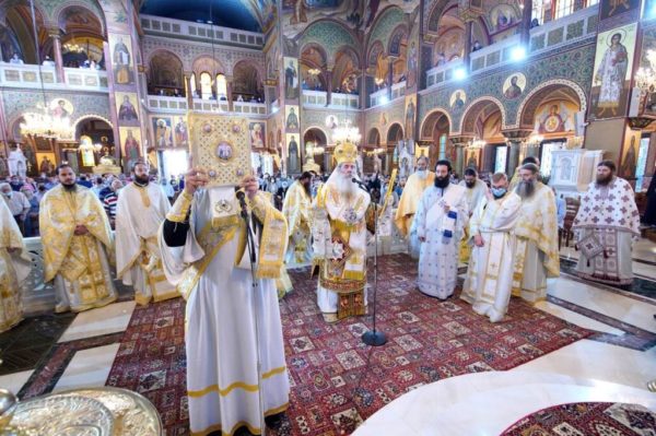 Προ της Απολύσεως και σύμφωνα με τα μέτρα που προβλέπονται από τις αρμόδιες υγειονομικές υπηρεσίες για την καταπολέμηση της πανδημίας, πραγματοποιήθηκε η περιφορά της Ιεράς Εικόνος πέριξ του Καθεδρικού Ιερού Ναού.