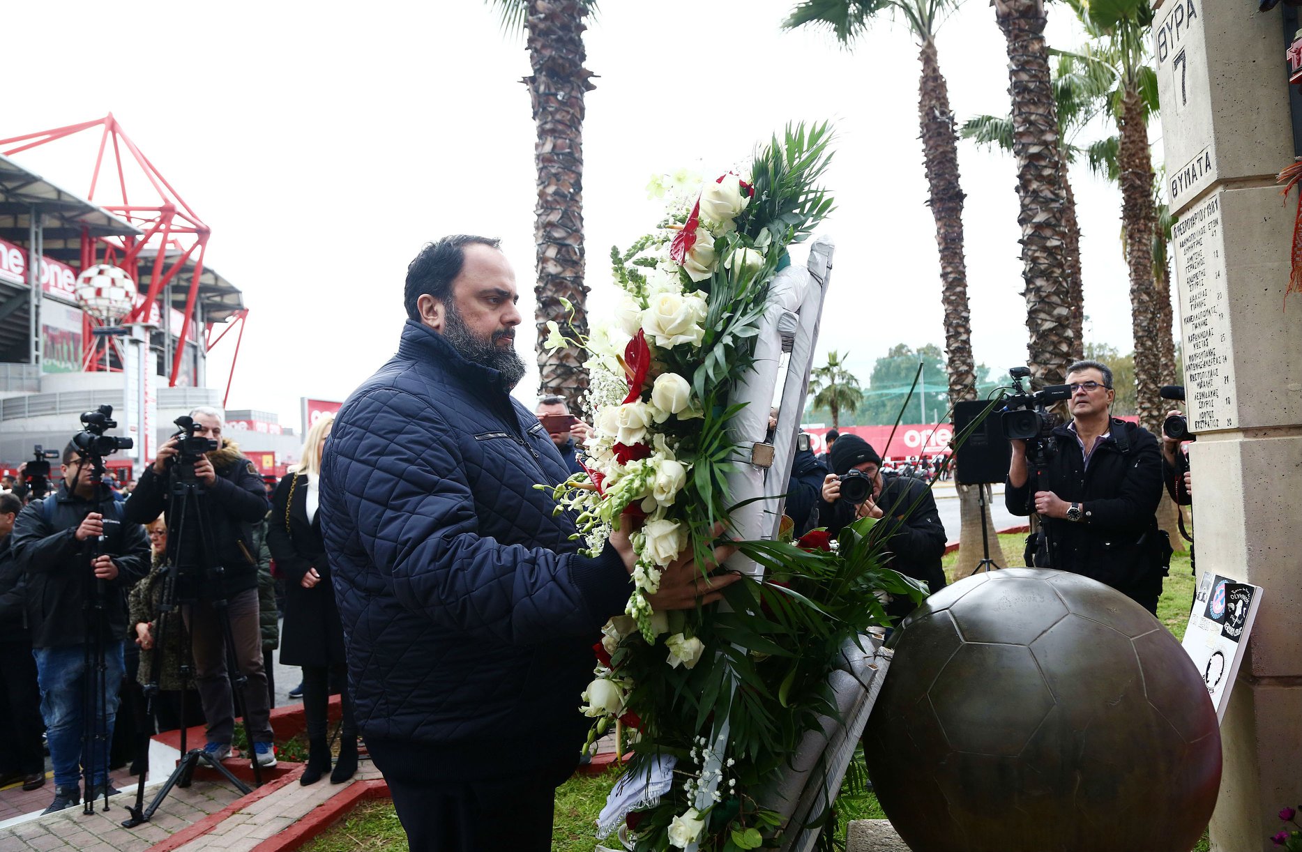 Παρουσία του ηγέτη της ομάδας του Ολυμπιακού κ. Ευάγγελου Μαρινάκη, τελέστηκε σήμερα Σάββατο 8 Φεβρουαρίου 2020 η επιμνημόσυνη Δέηση για τα θύματα της Θύρας 7 στο μνημείο που υπάρχει στο Στάδιο «Γ.Καραϊσκάκης», από τον Σεβασμιώτατο Μητροπολίτη Πειραιώς κ.Σεραφείμ.