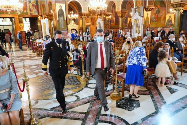 Παρέστησαν η Υφυπουργός Εργασίας και Κοινωνικών Υποθέσεων κα Δόμνα Μιχαηλίδου, ο Υφυπουργός Ναυτιλίας και Νησιωτικής Πολιτικής κ.Κωνσταντίνος Κατσαφάδος, ο Βουλευτής κ.Χριστόφορος Μπουτσικάκης, ο Δήμαρχος Πειραιά κ.Ιωάννης Μώραλης, ο Διοικητής της Σχολής Ναυτικών Δοκίμων Υποναύαρχος Ιωάννης Καλογερόπουλος ΠΝ, ο Κεντρικός Λιμενάρχης Πειραιά Αρχιπλοίαρχος Λ.Σ. Γεώργιος Σκανδάλης και ο Αστυνομικός Διευθυντής Παναγιώτης Τζεφεράκος.