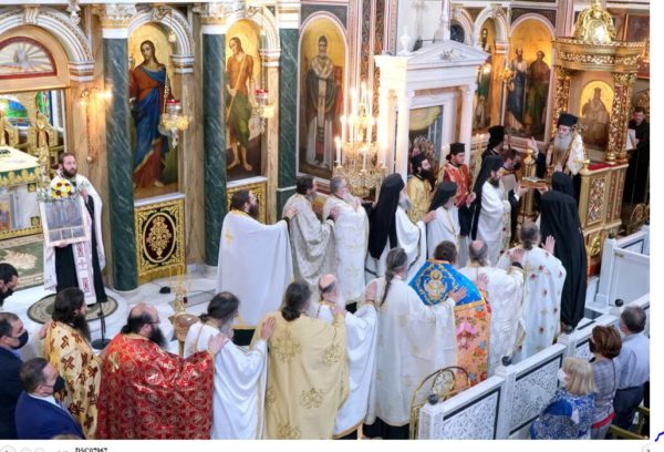 Με την δέουσα Εκκλησιαστική τάξη και λαμπρότητα και τηρουμένων των προβλεπομένων υγειονομικών μέτρων τελέστηκε χθες Πέμπτη 20 Μαΐου 2021 η Ακολουθία του Εσπερινού στον πανηγυρίζοντα Μητροπολιτικό Ιερό Ναό Αγίων Κωνσταντίνου και Ελένης Πειραιώς, χοροστατούντος του Σεβασμιωτάτου Μητροπολίτου Πειραιώς κ. Σεραφείμ.