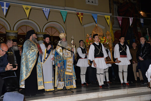 Μετά το πέρας του Μεγάλου Εσπερινού, ο Σεβασμιώτατος Μητροπολίτης Πειραιώς κ. Σεραφείμ, απηύθυνε ομιλία προς τους χιλιάδες πιστούς που συμμετείχαν και συνέρρεαν συνεχώς.