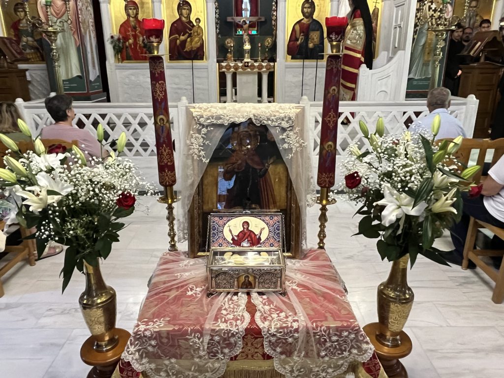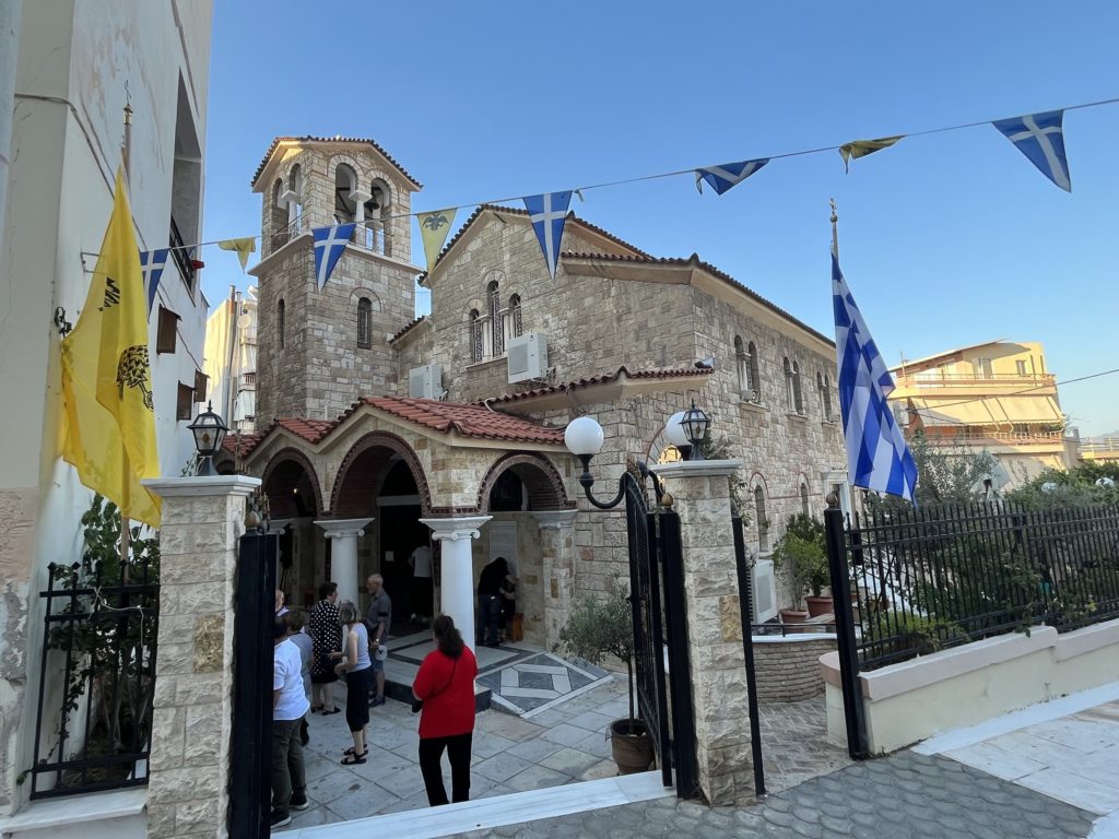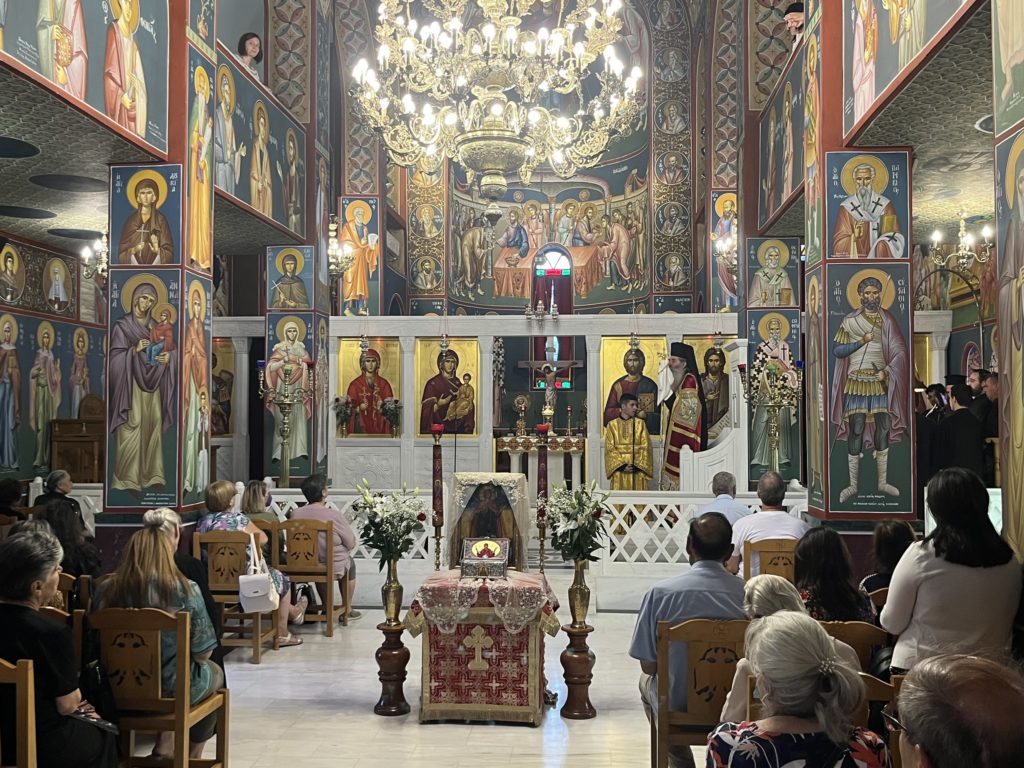 Στην Ακολουθία του Εσπερινού που τελέστηκε στον πανηγυρίζοντα Ιερό Ναό Αγίας Μαρίνας Καραβά χοροστάτησε χθες, Κυριακή 16 Ιουλίου 2023, ο Μητροπολίτης Πειραιώς κ.Σεραφείμ.