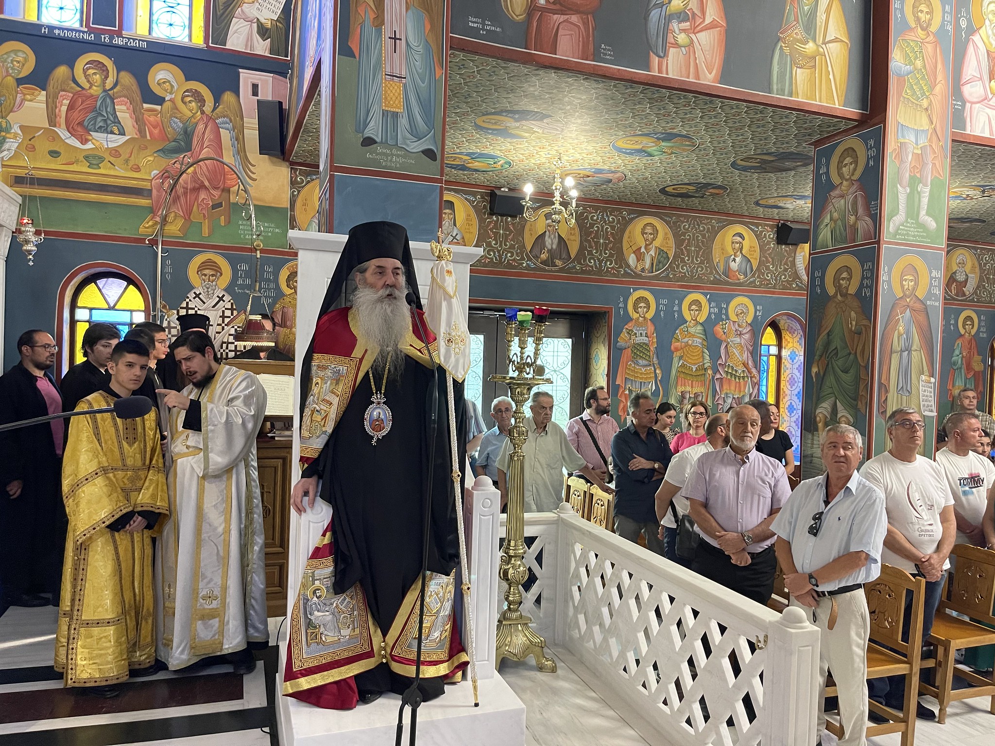 Συνέτριψε τον διάβολο «και έτσι η Αγία Μαρίνα απέβη πράγματι φως για την οικουμενική Εκκλησία, για κάθε άνθρωπο ελεύθερο, για κάθε άνθρωπο γενναιόψυχο που επιζητεί δρόμο αληθινό για να πορευτεί στη ζωή του», υπογράμμισε, ενώ αναφέρθηκε και στην έλευση της Τιμίας Κάρας της Αγίας στον Μητροπολιτικό Ιερό Ναό Αγίων Κωνσταντίνου και Ελένης Πειραιώς, από την Ιερά Μονή Αγίου Γεωργίου Ηλίων, η οποία ευωδίαζε μοιράζοντας σε όλους μας πλούσιες ευλογίες.