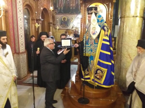 Το Ιερό Εικόνισμα συνόδευσαν μέλη του τοπικού Συλλόγου Ποντίων, ενώ η υποδοχή έγινε στην είσοδο του Ιερού Ναού από τον Σεβ. Μητροπολίτη Πειραιώς κ. Σεραφείμ. Στη συνέχεια τελέστηκε δέηση και Δοξολογία παρουσία πλήθους κόσμου.