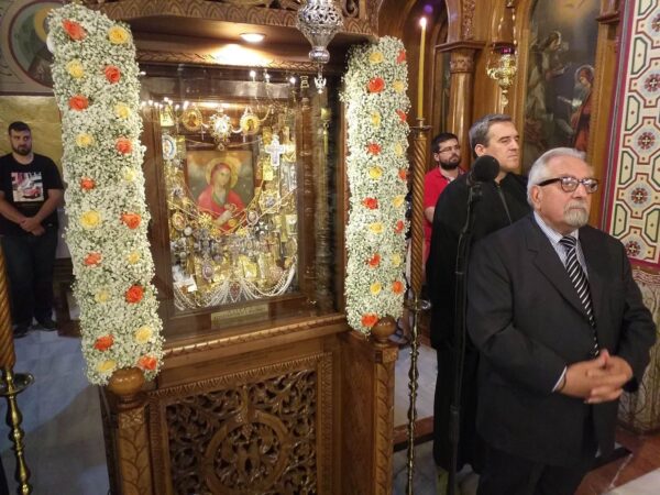 Το Ιερό Εικόνισμα του κ. Φλούμη προήλθε στην κατοχή του από τον παππού του και κατόπιν αποδοχής του Σεβασμιωτάτου Μητροπολίτου Πειραιώς κ. Σεραφείμ το Ιερό Εικόνισμα κομίστηκε και θα παραμείνει εσαεί στον Ιερό Ναό προς ευλογία και αγιασμό των πιστών.