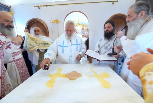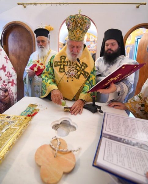 «Τελέσαμε τα ιερά εγκαίνια και μεταφέραμε τα λείψανα των Αγίων Μαρτύρων της Λαύρας του Αγίου Σάββα του Ηγιασμένου από την έρημο της Ιουδαίας», είπε σε άλλο σημείο του κηρύγματός του ο Σεβασμιώτατος κ. Σεραφείμ, τονίζοντας πως «η πιο ζωντανή απόδειξη, η πιο απτή απόδειξη ότι το έργο της σωτηρίας είναι πραγματικότητα και αγιάζει τους ανθρώπους και τους μεταβάλλει σε ένθεες αλήθειες, σε μετόχους και κοινωνούς της τρισιποστάτου Θεότητος», είναι οι χιλιάδες Μάρτυρες της Εκκλησίας μας. «Αυτό ακριβώς υποδηλώνει η κατάθεση των τιμίων λειψάνων στην Αγία Τράπεζα», προσέθεσε, συμπληρώνοντας πως «το σώμα γίνεται αγωγός θείων ακτίστων ενεργειών. Γι’ αυτό και τα ιερά λείψανα, τιθέμενα στην Αγία Τράπεζα, δοξάζουν τον Θεό μας».