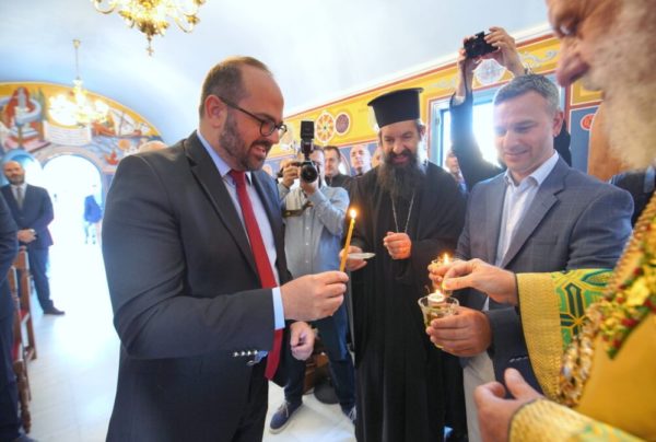 Υπογραμμίζοντας την πολύτιμη συμβολή του υπουργού κ. Πλακιωτάκη «για να γίνει πραγματικότητα αυτός ο ιερός χώρος, για να γίνει πύλη του Ουρανού», μνημόνευσε όλους όσοι αγωνίστηκαν για τον ναό και «βέβαια τους μεγάλους δωρητές, το έντιμο ζεύγος Αθανασίου και Μαρίνης Μαρτίνου» με δαπάνη των οποίων ανεγέρθηκε ο Ναός το 2019.