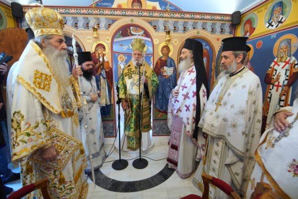 Προ της Απολύσεως ο Σεβασμιώτατος κ. Δωρόθεος Β΄ εξέφρασε την χαρά του που παρέστη στα εγκαίνια του Ιερού Ναού, ευχαριστώντας τον Σεβασμιώτατο ο οποίος «παρεχώρησε την θέση του στο ιερό θυσιαστήριο, όπως πάντοτε πράττει, με πολλή αγάπη προς όλους τους αδελφούς του», τονίζοντας ότι «είναι Ιεράρχης αρχοντικός, ευγενής, μεγαλοπρεπής, με λόγο παρρησιαστικό προς πάντες».