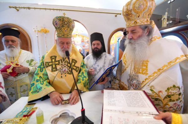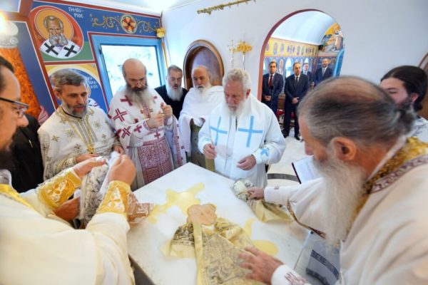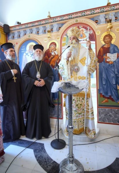 «Τελέσαμε τα ιερά εγκαίνια και μεταφέραμε τα λείψανα των Αγίων Μαρτύρων της Λαύρας του Αγίου Σάββα του Ηγιασμένου από την έρημο της Ιουδαίας», είπε σε άλλο σημείο του κηρύγματός του ο Σεβασμιώτατος κ. Σεραφείμ, τονίζοντας πως «η πιο ζωντανή απόδειξη, η πιο απτή απόδειξη ότι το έργο της σωτηρίας είναι πραγματικότητα και αγιάζει τους ανθρώπους και τους μεταβάλλει σε ένθεες αλήθειες, σε μετόχους και κοινωνούς της τρισιποστάτου Θεότητος», είναι οι χιλιάδες Μάρτυρες της Εκκλησίας μας. «Αυτό ακριβώς υποδηλώνει η κατάθεση των τιμίων λειψάνων στην Αγία Τράπεζα», προσέθεσε, συμπληρώνοντας πως «το σώμα γίνεται αγωγός θείων ακτίστων ενεργειών. Γι’ αυτό και τα ιερά λείψανα, τιθέμενα στην Αγία Τράπεζα, δοξάζουν τον Θεό μας».
