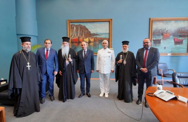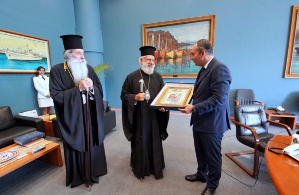 Στην συνέχεια απευθυνόμενος προς τον παριστάμενο υπουργό Ναυτιλίας και Νησιωτικής Πολιτικής κ. Ιωάννη Πλακιωτάκη, αλλά και στον Πειραιώτη υφυπουργό κ. Κωνσταντίνο Κατσαφάδο, ο Σεβασμιώτατος, κινούμενος από «πνευματική ανάγκη», όπως σημείωσε, εξέφρασε την ευγνωμοσύνη του «για την συναντίληψή τους, για την πολλή τους προς την Εκκλησία μέριμνα, στοργή και αγάπη, και ιδιαίτερα προς τον πανίερο Ναό, ο οποίος με θαυμαστό τρόπο και αγωνιστή διάθεση» του τέως αρχηγού του Λ.Σ. κ. Σταματίου Ράπτη, άρχισε να γίνεται πραγματικότητα.
