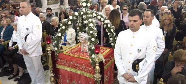 Ακολούθησε, στο κέντρο της πόλεως του Πειραιά, πάνδημη λιτάνευση της Ιεράς Εικόνος των Αγίων Ισαποστόλων Κωνσταντίνου και Ελένης και της Τιμίας Κάρας της Αγίας Ένδοξου Μεγαλομάρτυρος Βαρβάρας, η οποία βρίσκεται προς προσκύνηση στον Μητροπολιτικό μας Ναό, παρουσία πολιτικών και πολιτειακών αρχών, αγημάτων και μπάντας του Πεζικού και του Λιμενικού Σώματος, δημοτικών σχολείων και γυμνασίων του Πειραιά, της αδελφότητος Κρητών «Η Ομόνοια» και του Σώματος του Ελληνικού Ερυθρού Σταυρού.