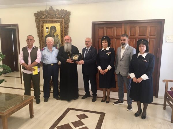 Στο περιθώριο της επίσκεψης ο Πρόεδρος του Ε.Ε.Σ δώρισε στον Σεβασμιώτατο ένα μικρογλυπτό.