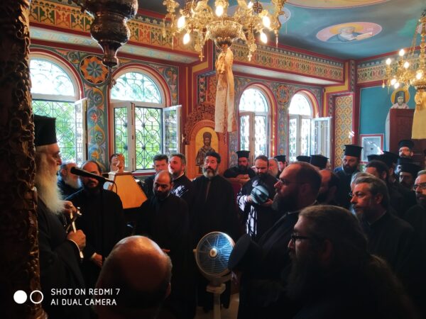 ιερατική σύναξη, όπου ο Σεβασμιώτατος αναφέρθηκε στα μέχρι τώρα πεπραγμένα και ιδιαιτέρως στα λαμπρά εγκαίνια του Παρεκκλησίου του Ιερού