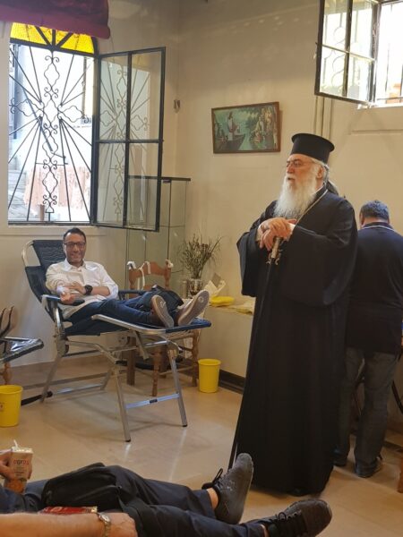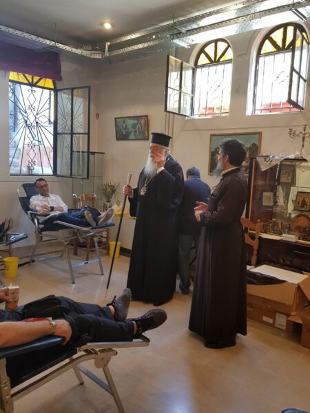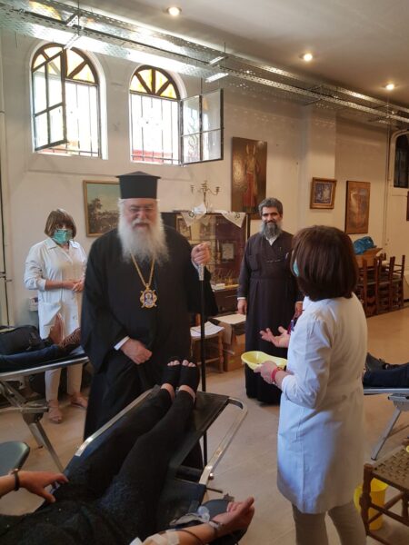 Έπειτα ο Σεβασμιώτατος επισκέφτηκε τον Ιερό Μητροπολιτικό Ναό “Ευαγγελισμός της Θεοτόκου” και τον Ιερό Ναό του Αγίου Νεκταρίου για να ευλογήσει και να ενδυναμώσει την εθελοντική προσπάθεια αιμοδοσίας που πραγματοποιείται στους Ιερούς Ναούς