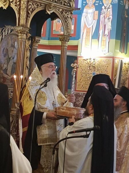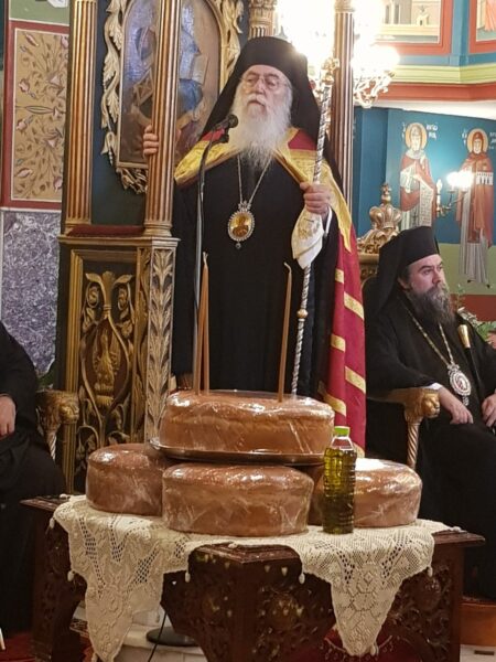 Ο Σεβασμιώτατος στο λόγο του αναφέρθηκε στην εορτή των Αγίων Πάντων λέγοντας μεταξύ άλλων: “Σήμερα ἡ Ἁγία μας Ἐκκλησία χαίρεται τήν παρουσία ὅλων τῶν Ἁγίων της “τό περικείμενον ἡμῖν νέφος μαρτύρων” (Ἐβρ. ιβ΄, 1) καί δοξάζουμε τόν Τριαδικόν Θεόν γι’ αὐτή τή μεγάλη δωρεά, ὥστε ἡ ζωή μας νά ἐνισχύεται καί νά καθοδηγεῖται ἀπό τούς Ἁγίους μας. Καί αὐτό εἶναι μεγάλη παρηγοριά γιά ὅλους ἐμᾶς τούς Χριστιανούς τῆς στρατευομένης Ἐκκλησίας”.