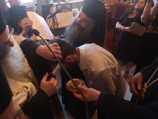 Κουρά μοναχού από τον Μητροπολίτη Περιστερίου