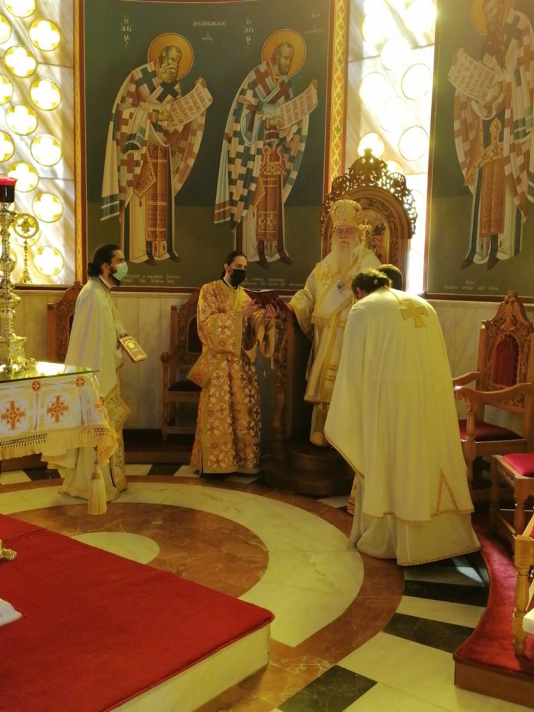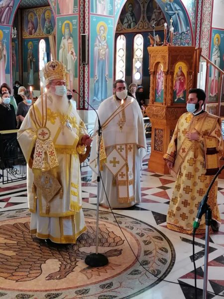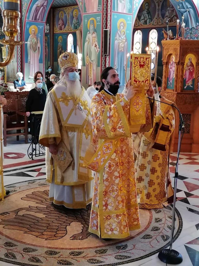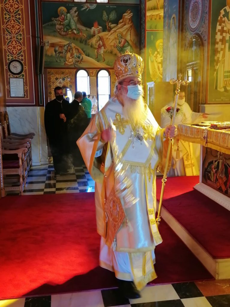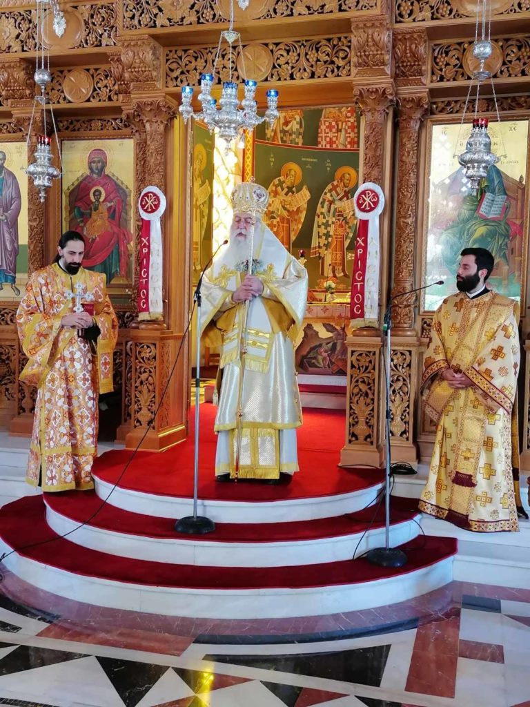 Στο τέλος της Θείας Λειτουργίας στη σύντομη προσλαλιά του απηύθυνε αναστάσιμες πατρικές ευχές στο εκκλησίασμα, ευχήθηκε στον εορτάζοντα διάκονο του Ιερού Ναού και τόνισε χαρακτηριστικά: