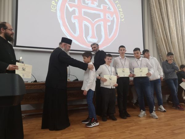 02/04/2023 02/04/2023 Με επιτυχία στέφθηκε το πρώτο διενοριακό πρωτάθλημα σκακιού. Η όλη εκδήλωση έκλεισε με τραγούδια από τις ενοριακές συντροφιές του Μητροπολιτικού Ναού Ευαγγελιστρίας. Όλοι οι συμμετέχοντες έλαβαν από τον Σεβασμιώτατο Μητροπολίτη Περιστερίου κ. Γρηγόριο ως ευλογία πασχαλινές λαμπάδες και μια εικονίτσα με τον Άγιο Γρηγόριο τον θεολόγο.