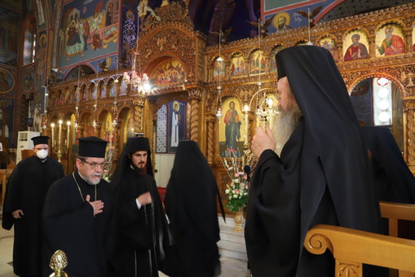 Ανήμερα της εορτής τέλεσε την Θεία Λειτουργία στο υστεροβυζαντινό παρεκκλήσι της Αγίας Τριάδος στη γωνία των οδών τζον Κένεντυ και Σοφοκλή Βενιζέλου.