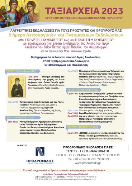 “ΤΑΞΙΑΡΧΕΙΑ 2023”: Έναρξη λατρευτικών εκδηλώσεων στον Ιερό Ναό Παμμεγίστων Ταξιαρχών Περιστερίου