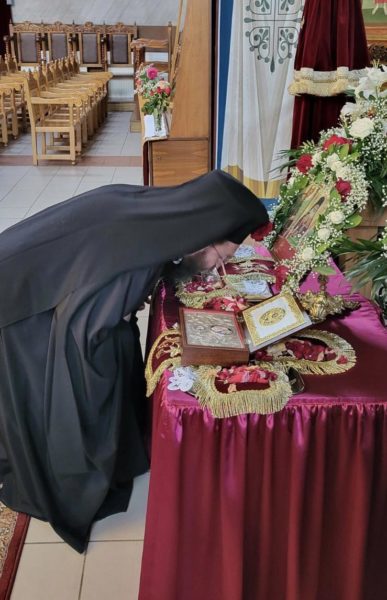 “Συζητήθηκαν επίσης και διάφορα θέματα διοικητικής φύσεως και δόθηκαν οι απαραίτητες κατευθυντήριες οδηγίες. Έδωσα επίσης ποιμαντικές κατευθύνσεις ενόψει της περιόδου του δεκαπενταύγουστου και δέχθηκα τις θερμές ευχές των Κληρικών του για τα ονομαστήριά μου, προσφέροντάς μου ως ένδειξη αγάπης και σεβασμού ένα αρχιερατικό εγκόλπιο”, ανέφερε ο Μητροπολίτης κ. Βαρθολομαίος.