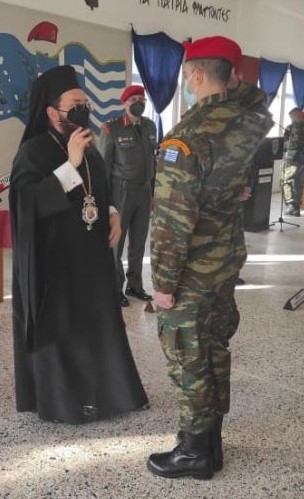 Κατόπιν προσκλήσεως του Διοικητού της 71ης Α/Μ Ταξιαρχίας “ο Πόντος”, Ταξίαρχου κ. Βασιλείου Τσάμη, ο Σεβασμιώτατος Μητροπολίτης Πολυανής και Κιλκισίου κ. Βαρθολομαίος, προέστη της Τελετής απονομής του κόκκινου μπερέ στο προσωπικό που αποφοίτησε επιτυχώς από το Τμήμα Προχωρημένης Εκπαίδευσης Νεοσυλλέκτων (ΣΠΕΝ) της 2021 ΣΤ’ ΕΣΣΟ.