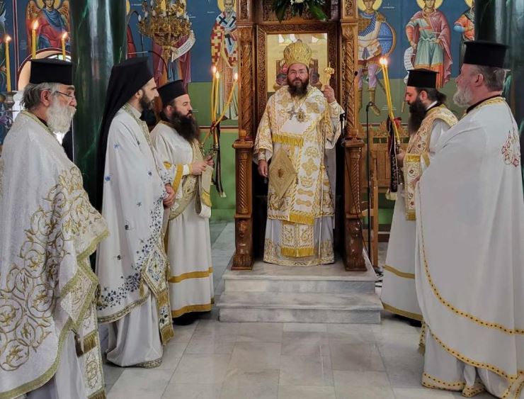 Των Ακολουθιών του Όρθρου και της Θείας Λειτουργίας προέστην ο Σεβασμιώτατος πλαισιούμενος από τους Εφημερίους του Ναού και Διακόνους, με τον ευσεβή λαό να προσέρχεται στον περικαλλή Ιερό Ναό του Αγίου για να προσκυνήσει την Ιερή του Εικόνα και να λάβει τη χάρη του.