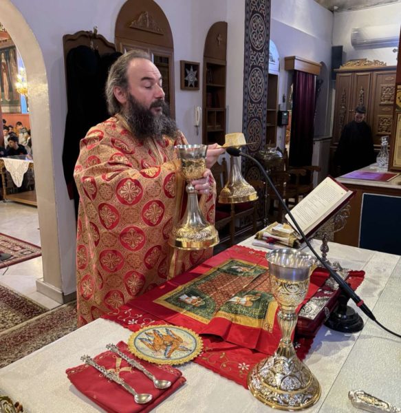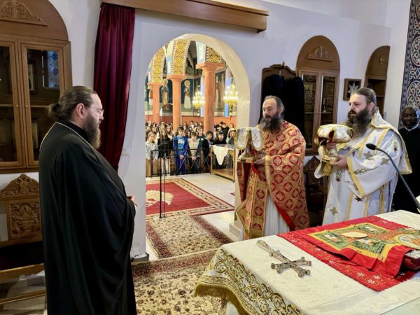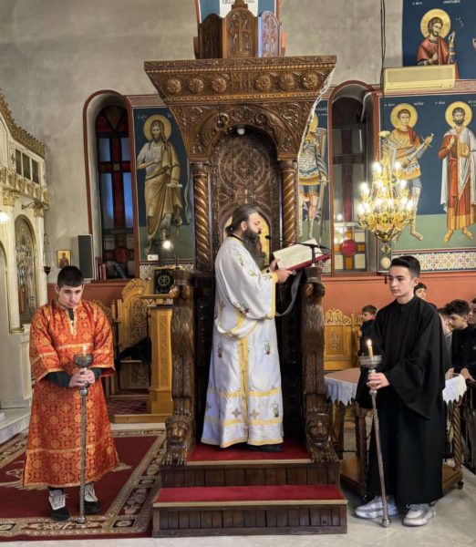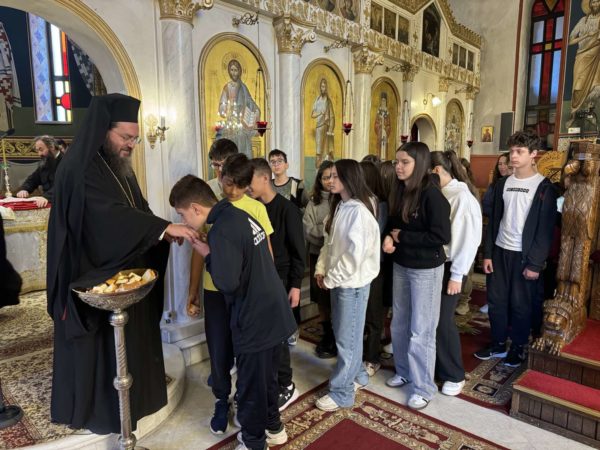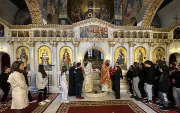 Την Θεία Λειτουργία τέλεσε ο Προϊστάμενος του Ναού Παν. Αρχιμανδρίτης Επιφάνιος Θεοδωρίδης, Πρωτοσύγκελλος της τοπικής Μητροπόλεως, συνεπικουρούμενος από τον Διάκονο του Ναού π. Σάββα Αμοιρίδη, συμπροσευχομένου του Σεβασμιωτάτου Μητροπολίτου κ. Βαρθολομαίου και μετείχαν στην Ευχαριστιακή Σύναξη μαθητές και εκπαιδευτικοί του Σχολείου.