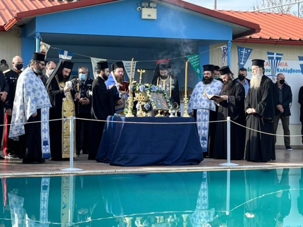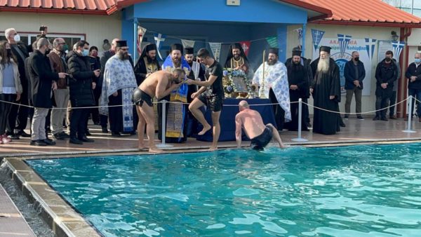 Ακολούθως, παρουσία του Δημάρχου Κιλκίς κ. Δημητρίου Κυριακίδη, του Αντιπεριφερειάρχου κ. Ανδρέου Βεργίδη, του Βουλευτού κ. Γεωργίου Φραγκίδη, των κ. Αντιδημάρχων του Δήμου Κιλκίς, της Περιφερειακής Συμβούλου κ. Αναστασίας Σωτηριάδου, του Διοικητού της 71ης αερομεταφερόμενης Ταξιαρχίας “ΠΟΝΤΟΣ” Ταξιάρχου Βασιλείου Τσάμη, λοιπών Αξιωματικών του Στρατού και των Σωμάτων Ασφαλείας καθώς και πλήθους λαού του Θεού, ο Σεβασμιώτατος κ. Βαρθολομαίος μετέβη στις 12:00 στο αθλητικό κέντρο της πόλεως του Κιλκίς “Αλέξανρος” όπου τέλεσε, στην πισίνα των αθλητικών εγκαταστάσεων του, τον Αγιασμό και την ρίψη του Τιμίου Σταυρού.