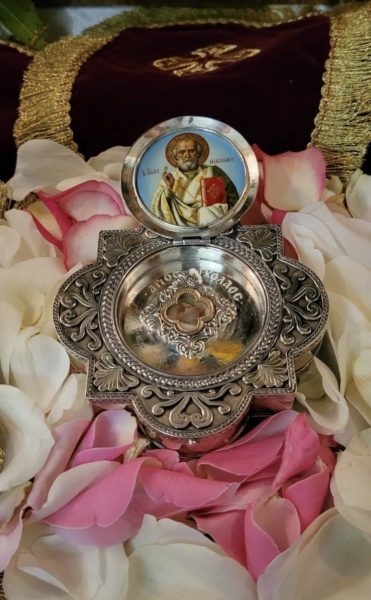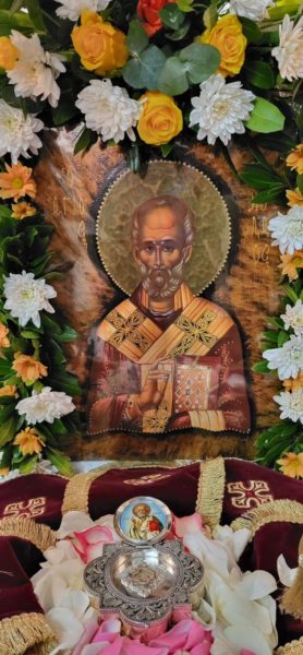 Νωρίτερα το απόγευμα κλήρος και λαός είχαν την ευλογία να υποδεχθούν το Ιερό Λείψανο του Αγίου Νικολάου.