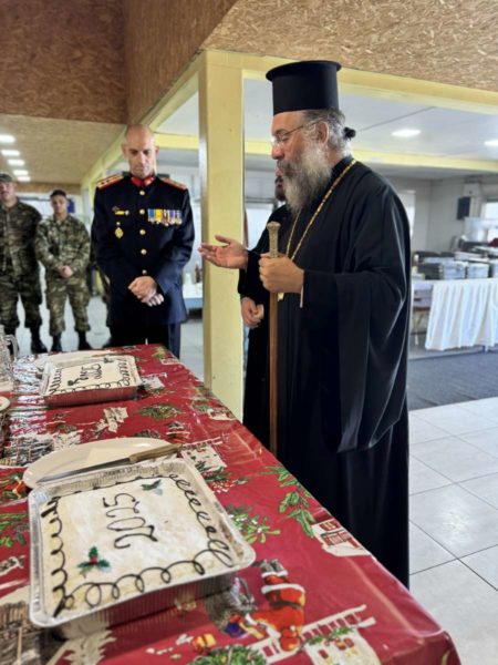 Στη συνέχεια, ο Σεβασμιώτατος επισκέφθηκε εορτίως τα Στρατόπεδα του Ρεθύμνου και γευμάτισε με τον Διοικητή του 547 Α/Μ Τάγματος Πεζικού, Αντισυνταγματάρχη κ. Διονύσιο Αναστασόπουλο, τον Υποδιοικητή του 548 Α/Μ Τάγματος Πεζικού, Ταγματάρχη κ. Νικόλαο Βαβλέκη, και τους στρατιώτες, ευχόμενος σε αυτούς και τις οικογένειές τους πλούσια την ευλογία του Θεού και κατά τη διάρκεια του ανατείλαντος νέου έτους.