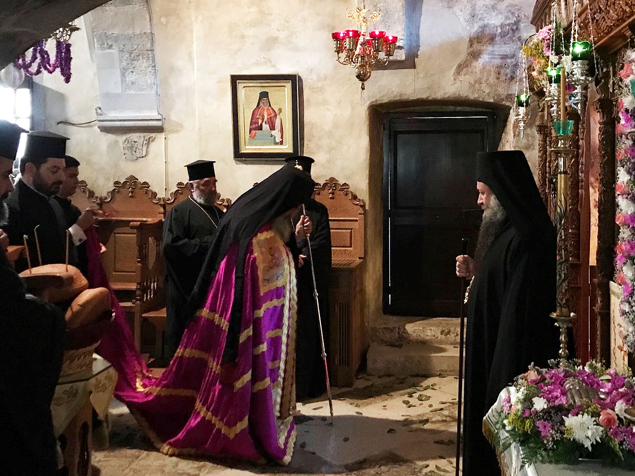 Πριν από τον Εσπερινό ο Σεβ. Μητροπολίτης Ρεθύμνης και Αυλοποτάμου κ. Ευγένιος τέλεσε τον Αγιασμό των Εγκαινίων του νέου Κειμηλιαρχείου της Ιεράς Μονής, πλαισιούμενος από τον Ηγούμενο Πανοσιολ. Αρχιμ. Παρθένιο Καλυβιανάκη, με την φροντίδα του οποίου αυτό δημιουργήθηκε. Παραβρέθηκαν ο διακεκριμένος μουσειολόγος κ. Ηλίας Παπαγεωργίου και οι συνεργάτες του, οι οποίοι επιμελήθηκαν τη μελέτη και κατασκευή του Κειμηλιαρχείου. Ακολούθησε η παραδοσιακή μοναστηριακή δοχή σε όλους τους προσκυνητές.