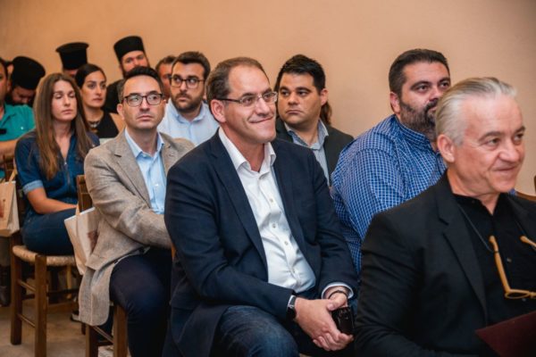 Επίσης, ο Σεβασμιώτατος, κατά τη μετάβασή του στην Ιερά Μονή Αρκαδίου, είχε τη χαρά να υποδεχθεί και να ξεναγήσει στους χώρους της Μονής, καθώς και στην Επετειακή 6η Έκθεση Αγιογραφίας και Ψηφιδωτού, που φιλοξενείται αυτήν την περίοδο στην Πινακοθήκη του Αρκαδίου, τον Υφυπουργό Εθνικής Άμυνας κ. Ιωάννη Κεφαλογιάννη, τον Υφυπουργό Αγροτικής Ανάπτυξης και Τροφίμων κ. Διονύσιο Σταμενίτη και την Βουλευτή Β1 Βορείου Τομέα Αθηνών της «Νέας Δημοκρατίας» κ. Ζωή Ράπτη, με τους οποίους είχε σύντομη συζήτηση στο Αρχονταρίκι της Μονής.