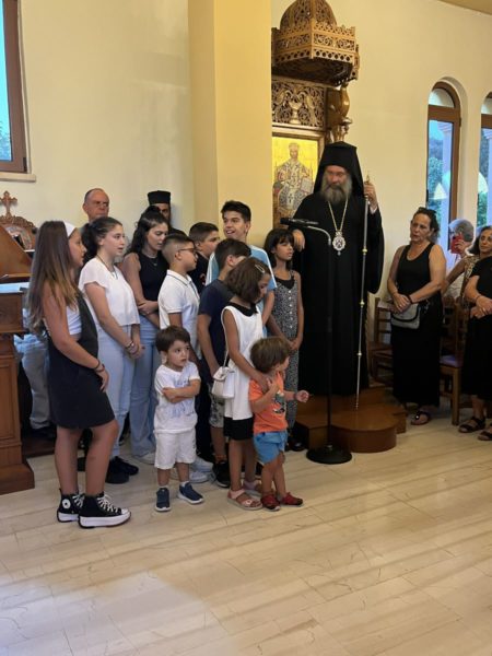 Προ της απολύσεως του Εσπερινού, ο Σεβασμιώτατος εξέφρασε τις ευχαριστίες του στον Εφημέριο της Ενορίας π. Φανούριο, στους Κληρικούς, στον ομιλήσαντα Καθηγούμενο και σε όλους τους πιστούς που προσήλθαν για να τιμήσουν την Εορτή της Οσίας Ειρήνης Χρυσοβαλάντου, η οποία συνδέεται και με την προσωπική ζωή του Μητροπολίτης Ρεθύμνης, καθώς η μοναχική του αφιέρωση έγινε στην Ιερά Μονή Οσίας Ειρήνης Χρυσοβαλάντου Ηρακλείου. Ο Επίσκοπος ευχήθηκε πλούσια τη Χάρη του Θεού και τη σκέπη της Οσίας Ειρήνης σε όλους τους πολυπληθείς προσκυνητές. Ιδιαίτερα δε, χαιρέτισε την παρουσία και συμμετοχή των μικρών παιδιών, προς τα οποία ευχήθηκε κάθε πρόοδο και ευλογία του Θεού στη ζωή τους.