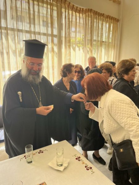 Ο Σεβασμιώτατος με την παρουσία της αρμόδιας Αντιδημάρχου Ρεθύμνης κ. Άννας Ελευθεριάδου-Γκίκα, των Εφημερίων της Ενορίας Αγίου Γεωργίου Καλλιθέας, Πρωτοπρεσβυτέρων Δημητρίου Χριστοδουλάκη και Εμμανουήλ Κυριαννάκη, και των εργαζομένων, εκπαιδευτών και ωφελουμένων του ΚΑΠΗ, είχε την ευκαιρία να συνομιλήσει με όλους τους ανθρώπους σε ένα ευχάριστο κλίμα επικοινωνίας και αναστροφής.